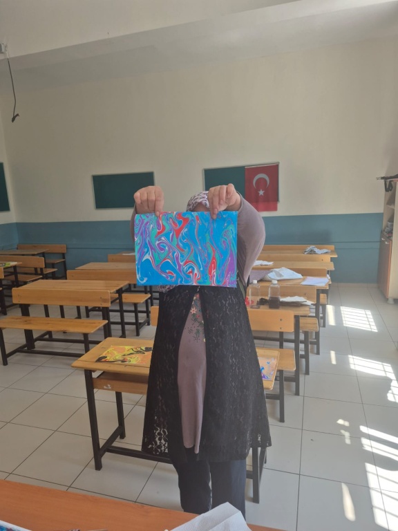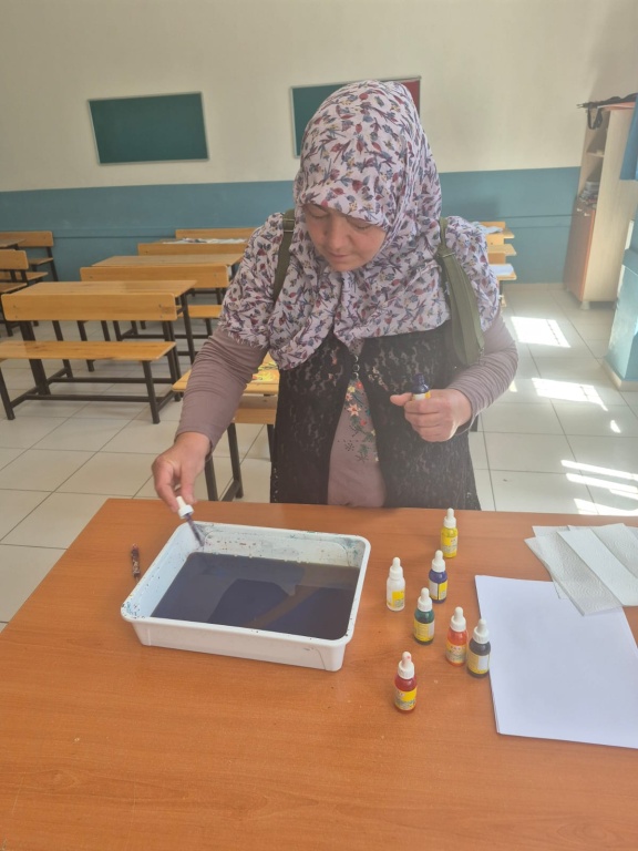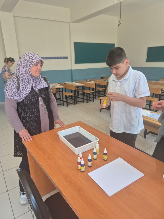 Öğrencileimiz ve velilerimizle birlikte Ebru Sanatı etkinliği yapıldı.
